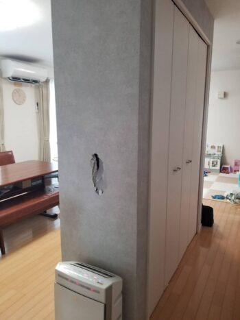 長崎市高城台のお客様より、「壁に穴が空いてしまったので塞いでほしい」とご依頼を受け、施工してきました!
