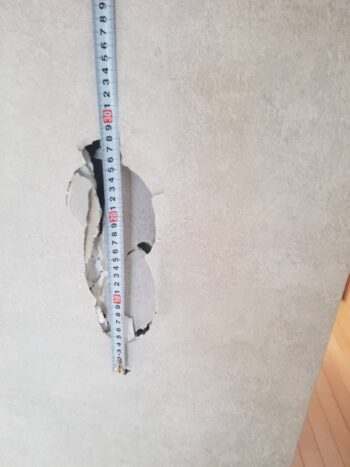 現場を拝見させていただくと、縦30㎝弱、横10㎝程度の大きな穴が空いていました。